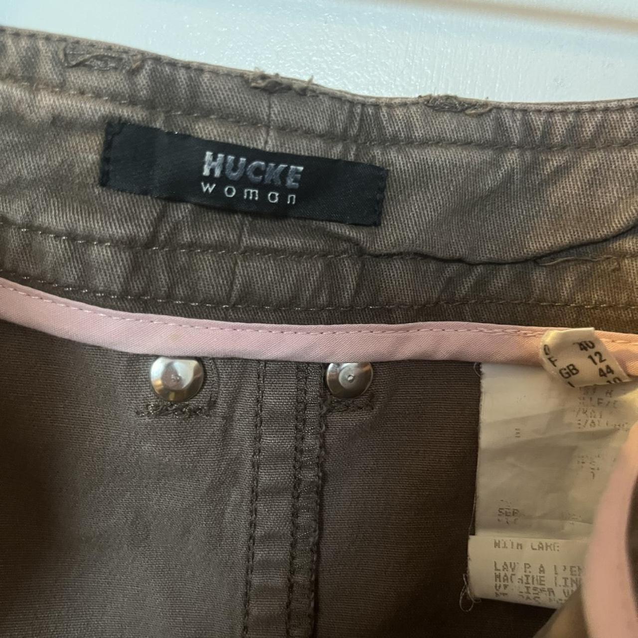 Brown midi skirt with floral embroidery and button details. Size: 12