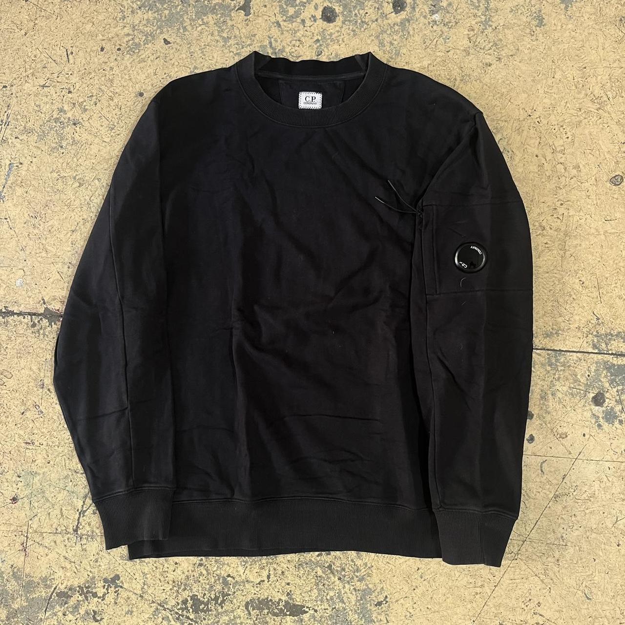 Black cp company jumper with goggle badge on the arm